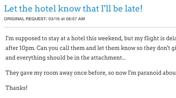 While you can initiate requests over the phone and add attachments via email, you'll always have a complete history of all the work we did on the request page. This thing is a beauty.